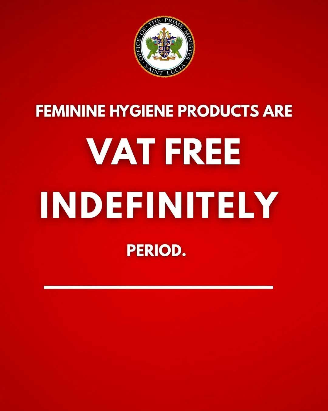 Saint Lucia has taken a bold step in addressing period poverty with the approval of legislation permanently exempting menstrual hygiene products from the Value Added Tax (VAT). The reform will allow sanitary pads, tampons, and other related items to no longer be subject to the 12.5 percent levy, leading to a guaranteed reduction in prices across supermarkets, pharmacies and shops island-wide.