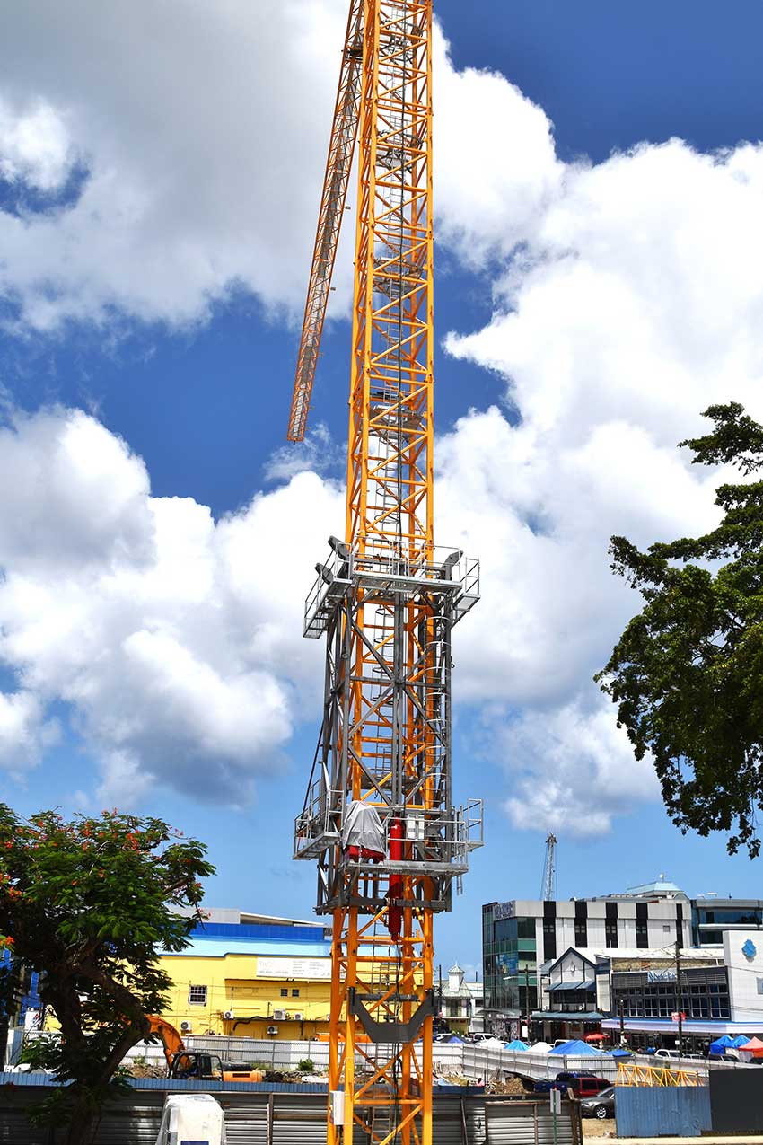 “We are very mindful that this project is unfolding in the heart of Castries, surrounded by homes, businesses, schools, and institutions,” said Rishi Koonoo, Project Manager. “That is why we are placing strong emphasis on consultation, cooperation, and an open channel for grievances.” Koonoo went on to elaborate, speaking specifically about the crane. “It’s a very safe and secure, structurally sound foundation that the crane is erected on. There will be a safety measure of two men with wireless communication from the top to the ground and they will be directing the material movement from point A to either one of the sites.”