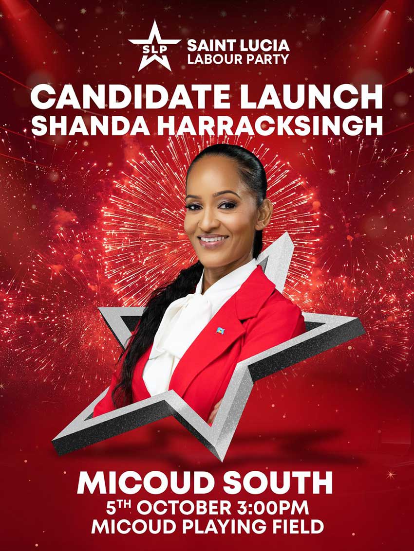 With heightened anticipation for contesting a major southern constituency seat, the Saint Lucia Labour Party (SLP) proudly announces the official launch of its candidate for Micoud South, Dr. Shanda Harracksingh.Â