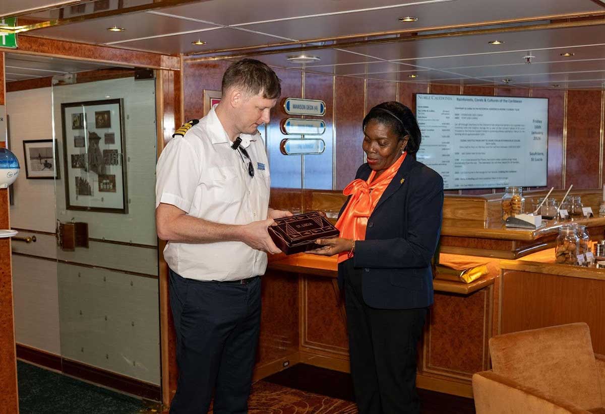 The SRDF confidently joined forces with stakeholders, including the Saint Lucia Tourism Authority (SLTA), the Ministry of Tourism, Cox & Company, and Member of Parliament for Soufriere, Emma Hippolyte, to formally greet the captain, crew, and guests.