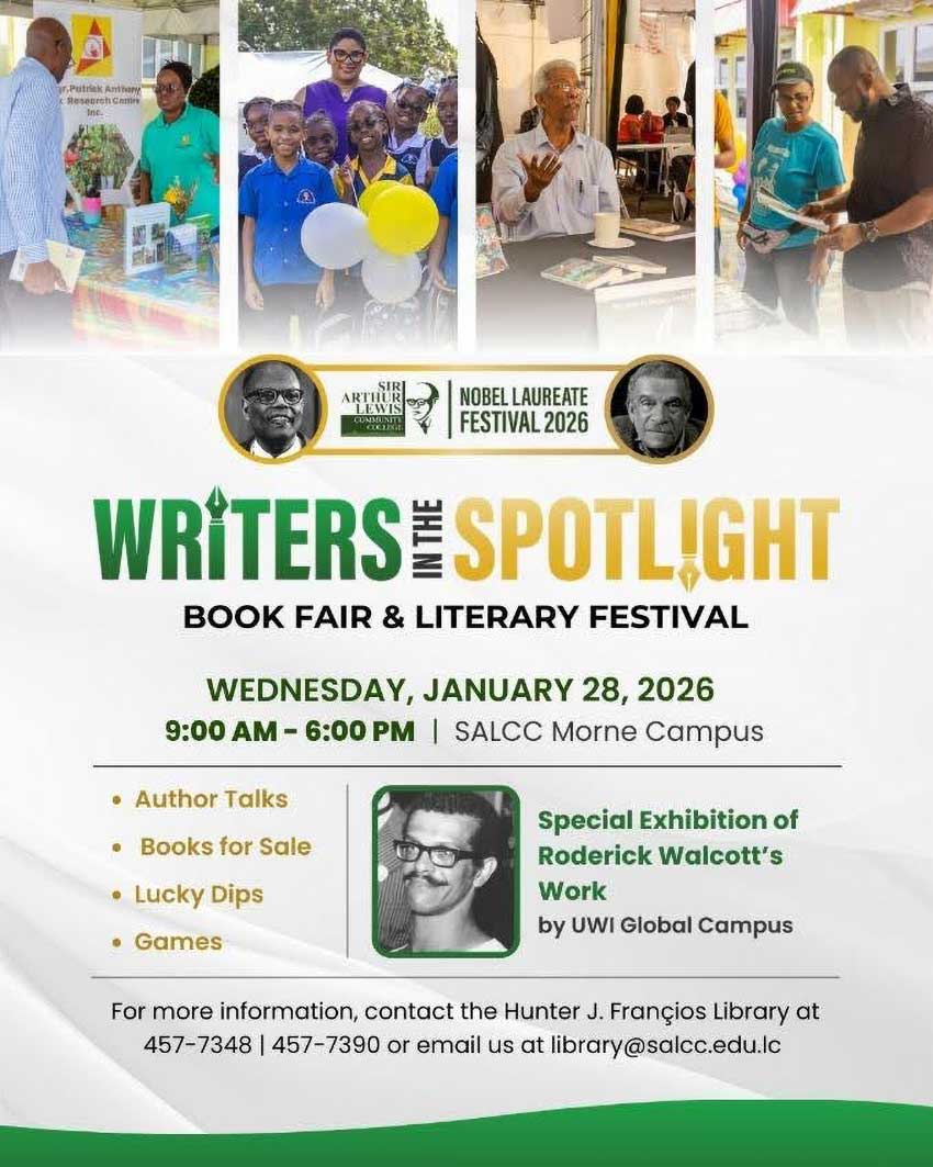 The Sir Arthur Lewis Community College (SALCC) will showcase over 40 Saint Lucian authors at its 2026 Writers in the Spotlight on Wednesday, January 28, 2026, from 9:00 a.m. to 6:00 p.m. at its Morne campus.