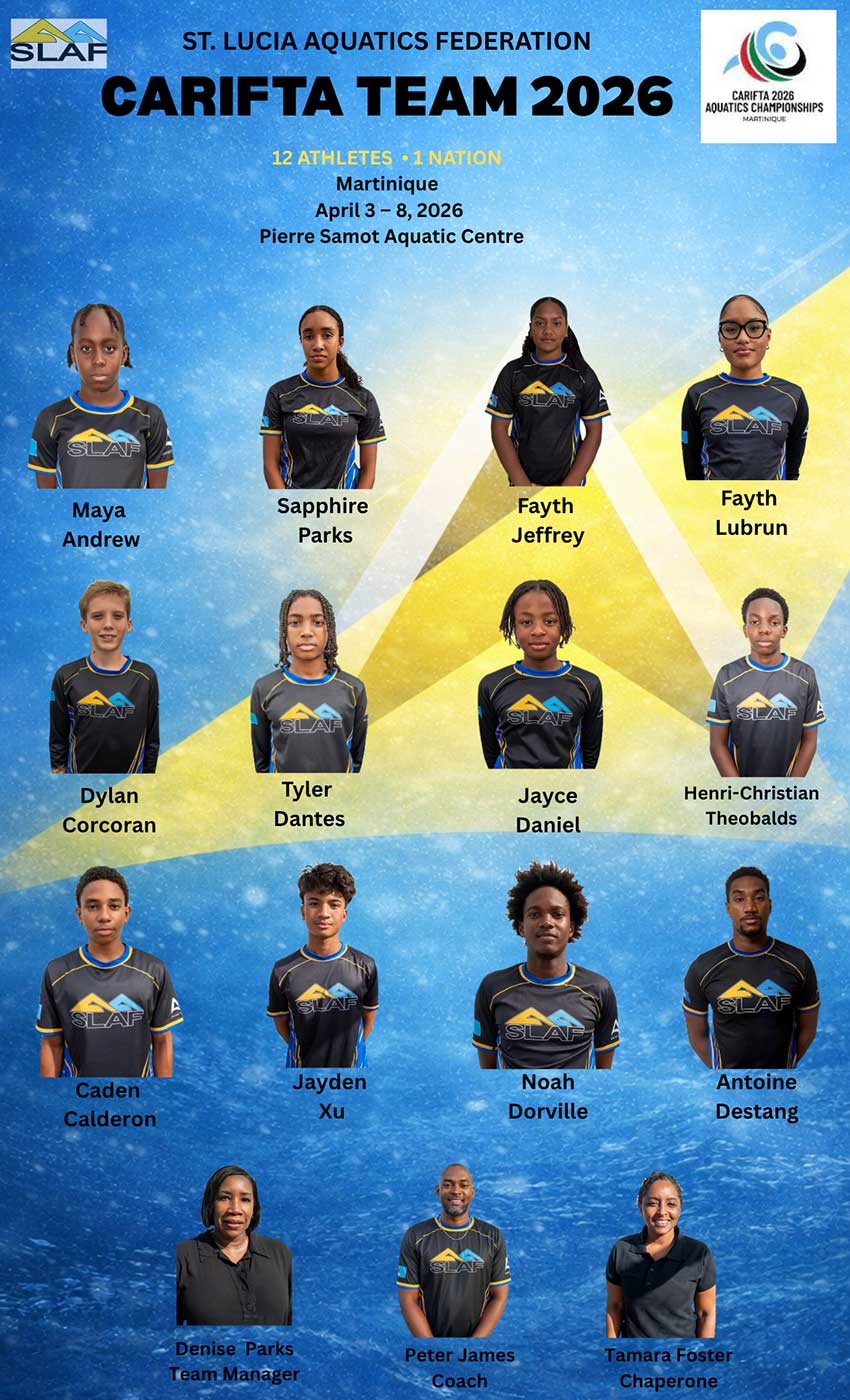 The St. Lucia Aquatics Federation (SLAF) is excited to announce the official team that will represent the island at the CARIFTA Aquatics Championships 2026, taking place from April 3–8 at the Pierre Samot Aquatic Centre in Le Lamentin, Martinique.