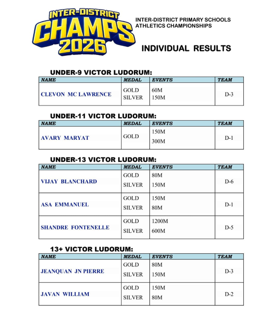 A special shout-out goes to Shandre Fontenelle, a standout athlete from District 5, who captured the Victor Ludorum title at Wednesday’s Inter-District Track Meet.