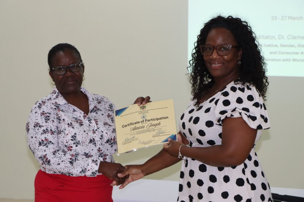 Deputy Permanent Secretary in the Ministry of Equity, Social Justice, Gender and Older Persons, Karen Dupre, highlighted the broader impact of the training on service delivery. “I am confident that the knowledge and skills gained during these five days of training will have a significant impact on the vulnerable persons we serve. Case management does not focus solely on assessment, planning, and coordination, it also encompasses ways of improving communication skills, such as fostering empathy, and emphasizes the importance of self-care when working with vulnerable populations,” Dupre explained.
