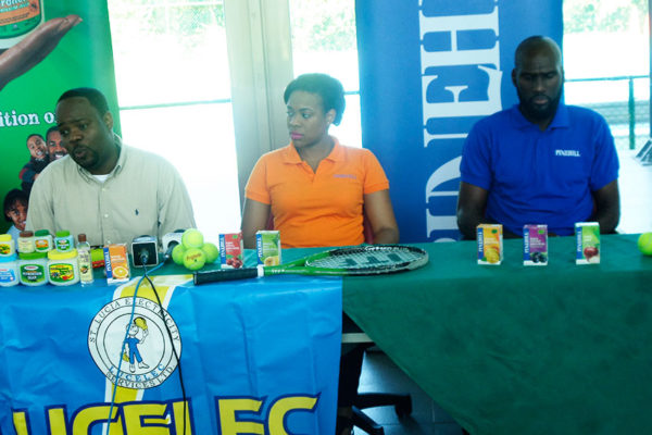 Board members of the St. Lucia Tennis Association Inc. (SLTAI) and representatives from PCD featuring Pinehill Juices and Diquez Skin …