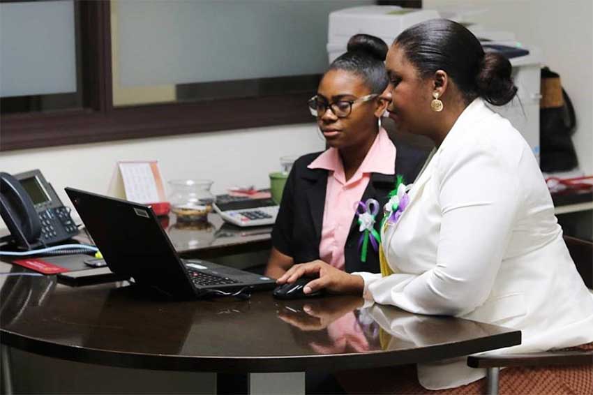 The following day, International Women’s Day saw Miss Tara Moses, a second year student from the Business Administration Department of Sir Arthur Lewis Community College (SALCC) “shadowing” Branch Manager Mrs. SmernaPompelis-Kangal for the day. Ms. Moses described the experience as “very informative” and added that it introduced her to “a new side of banking and financing which I had no idea about”.
