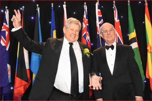 Gordon “Butch” Stewart, Chairman and Founder of Sandals Resorts accepted the Chancellor’s Award on behalf of his company at the …