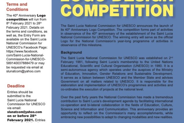 The Saint Lucia National Commission for UNESCO is pleased to announce the launch of its 40th Anniversary Logo Competition. The …