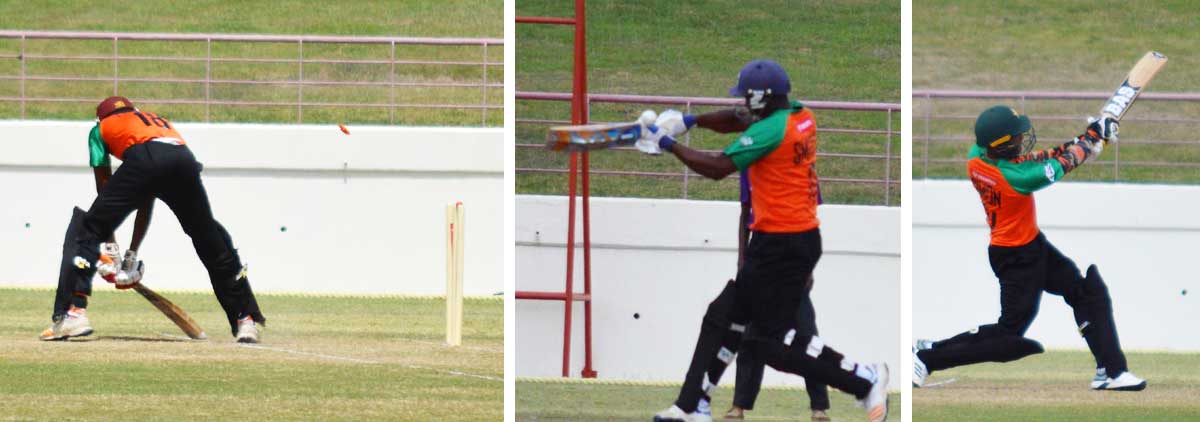 (L-R) Junior Henry bowled by Daniel Baptiste for 18; Vince Smith caught off the glove for 0; Jason Simon top scored for CCP with 43 not out (Photo: Anthony De Beauville)