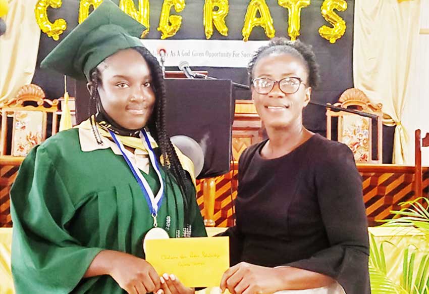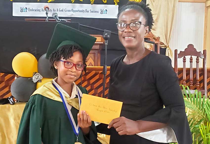 During the graduation ceremony of the Emmanuel SDA Combined School in July, the Chalama Vern Peters Foundation presented its inaugural scholarship award to two students who were successful at the 2021 Common Entrance Examinations (CEE).