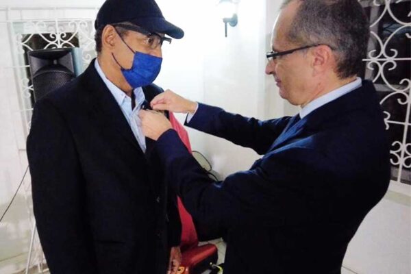Marc Mertillo, Chargé d’Affaires at the Embassy of France in residence in Saint Lucia, presented the insignia of Chevalier in …